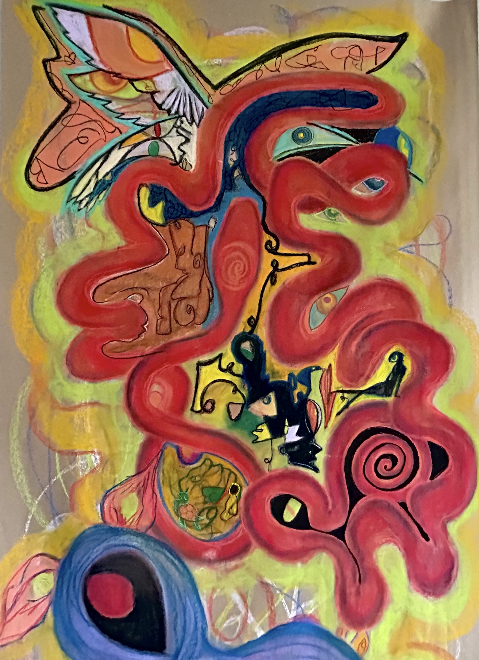 Sequoia River is an budding visionary and abstract artist. Her works span over 200 soft pastel pieces that she channels in a meditative and intuitive practice. Her style feels like swimming in the collective subconscious, a little chaotic, dark, and yet also colorful, full of hope and life. Each piece has a healing message or affirmation that is infused into the work while she creates it. She playfully names each piece by these affirmations with the intention that if the viewer says it aloud, they "unlock" the healing magic contained in the piece for themselves.